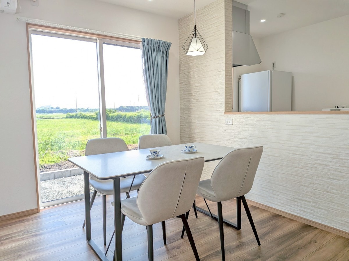 Reiwa Houseは高島市の風車村にあり、プライベートな湖畔別荘です。家には4つの寝室、広いリビングやダイニング、設備の整ったキッチンがあります。テラスではバーベキューが楽しめ、プロ仕様の炭火BBQグリルも完備しています。無料Wi-Fi、無料の駐車スペース3台があり、家族や友人と一緒に集まるのに最適です。 Reiwa House is nestled by the shores of Lake Biwa in Takashima city, offering a quiet and private space. The house features 4 bedrooms, a spacious living and dining area, and a fully equipped kitchen. The terrace is perfect for barbecues. It offers free Wifi and 3 parking lots, making it an ideal spot for gatherings with family and friends.