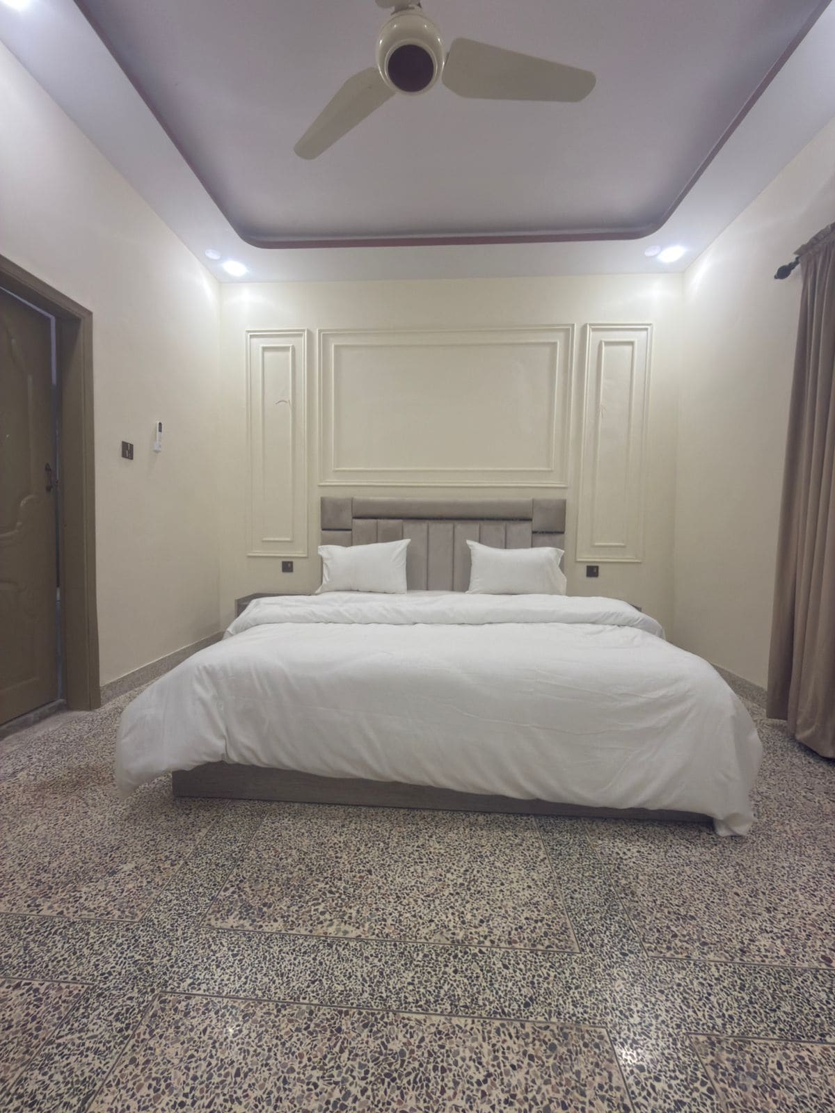 Gulistan-e-Joharにある静かな2ベッドルームのバンガローへようこそ。カラチ空港からわずか10分です!ご家族連れ、ビジネス旅行者、週末の休暇に最適な、完全にプライベートな家で、快適さ、安全性、地元の雰囲気が融合しています。 ゲート付きの安全で静かな住宅街に🏠あります 強力なエアコン❄️2台 ⚡ バックアップ発電機:停電の心配なし 🌐 高速Wi-Fi フルサイズの寝室🛏️2部屋(バスルーム付き) 🛋️ 1つの居間(3つ目の部屋)にはソファと6人用のダイニングテーブルがあります 設備・器具🍽️のそろったキッチン