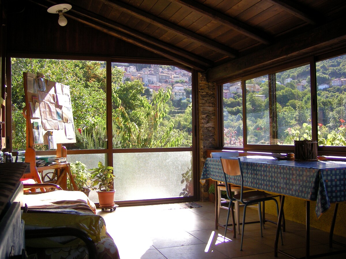 カゼッタ・ス・ムルコーネは、サルデーニャ島オリアストラ県の美しい丘の上にある村バウネイに位置しています。 バウネイ村は、山の中にありながら、海に非常に近いところにあります。実際、村からわずか6キロのところに、サルデーニャ島で最も美しい場所の一つであるペドラ・ロンガがあります。本物の山々に囲まれた美しい海、エメラルドグリーンの海、シュノーケリング、水泳、スキューバフィッシングが好きな人々を魅了する深さがあります。さらに数キロ進むと、わずか10キロのところに、海に面したバウネイの村、サンタ・マリア・ナバレーゼがあります。ここは、バウネイの住民の夏の住まいであり、海を愛する人々にとっては、観光地でもあります。 この家は、バウネイの歴史的中心部にある古い家で、環境とオリジナルの材料を厳格に回復し、最新の快適さとコンフォートのニーズに応えるように巧みに改装されました。 海から数キロの丘陵地帯に位置し、海辺の観光地の典型的な喧騒から離れた静かな場所で、夜は涼しく、休息に最適な夏の住まいとして適しています。一方、春、秋、冬にこの家に滞在することは、あらゆる自然の美しさに満ちた周辺の地域を探索したい方に最適です。海の眺めを楽しめる素晴らしい山道、ロッククライミングコース、乗馬、ワインと食のツアー、キノコ狩り、社会文化的探索など。 家は、キッチンとダブルベッドを備えたリビングルームからなる一室です。モダンで快適なバスルームがアパートメントを完成させています。 らせん階段を上ると、美しいテラスが広がります。谷と古い屋根の美しい景色を見渡すことができます。風通しが良いテラスは、同時に風から守られています。どの季節でも、太陽の光が降り注ぐ日には、美しい景色と村の典型的な音、自然の音に囲まれながら、テラスで食事をすることができます。 家は、すべてが整っていて、居心地が良く、家具も充実しています。コストは、海辺の住宅と比べても、非常に低く競争力があります。