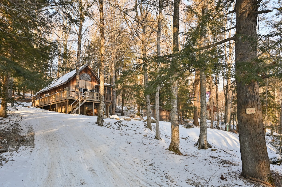 プライベートサウナと素晴らしい新しいホットタブを備えた美しく新しいリバーベッドツリーハウス!一日中眺めることができ、夕日はとても素晴らしいです!!ストラットン山はすぐ近くにあり、春には小川が荒れ狂う川に変わります!美しい森とトレイルを探索できます。マジックマウンテンのスキーコースからの素晴らしい尾根のライン!! 町に近く、ショッピングやコーヒーショップにすぐ行けます!クロスカントリースキーやスノーシュー、または整備されたトレイルを歩きましょう!!高速Wi-Fi、自然愛好家とバードウォッチャーの楽園!@ bentapplefarm