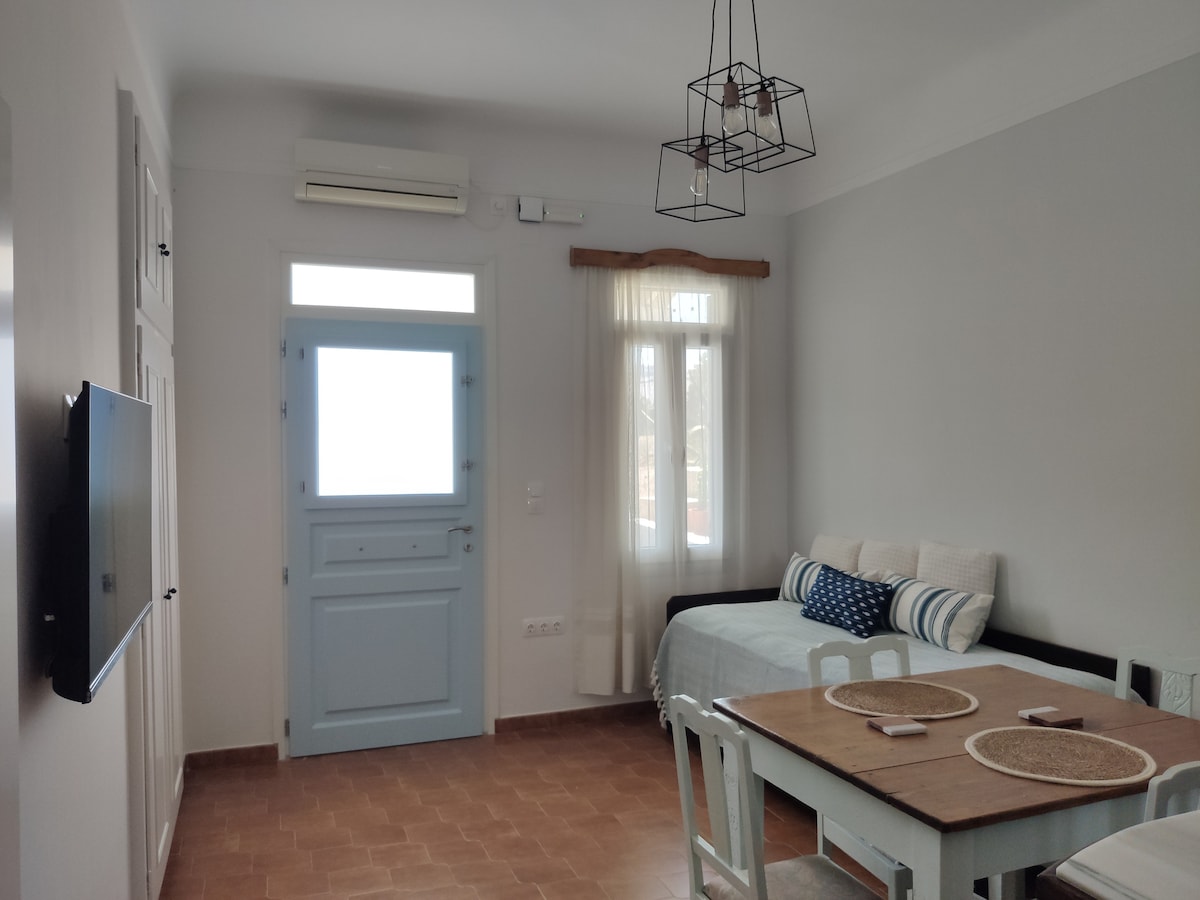 ***詳細については、in - sta - gr - am @ pa_nickまでお問い合わせください。*** シロス港からわずか3分のエルムーポリ中心部にある広々とした居心地の良いワンルーム1階。 こちらは居心地の良い広くてとても明るいワンルームで、街の散歩に最適です **アパートには約20段の階段があります
