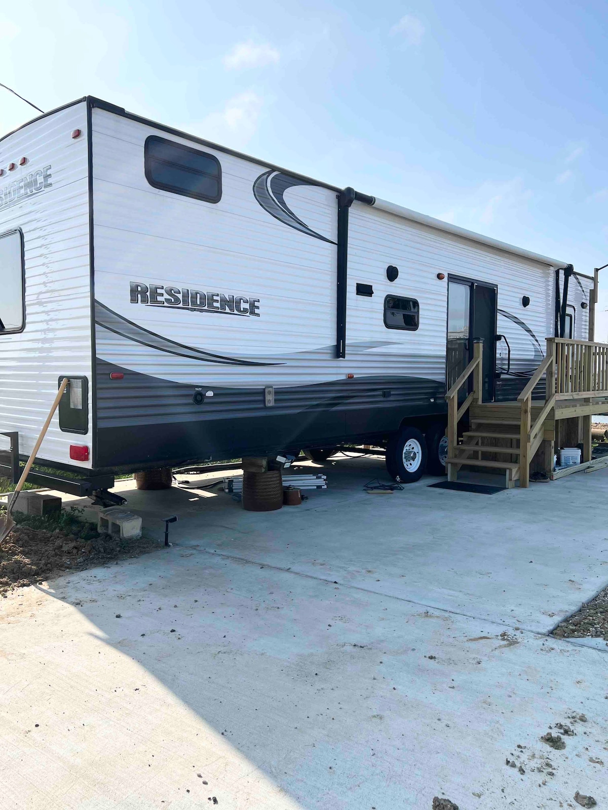 美しい新しいキャンピングカーです。とても清潔です。 キャンピングカーの上に大きなカバーがあり、大きなコンクリートパッドがあります。 カバーはテキサスの暑さの間に少しの救いとなり、雨の日にはカバーとなります。 裏口のすぐ外に魚やカニがいます。新しい10 x 16フィートの高さのデッキがあり、そこからはバージ、ペリカン、海岸の鳥や夕日を眺めることができます! この場所には、調理用のグリルが付いた焚き火台があります。 キャンプ場の裏手までボートを引っ張ってきてください。就寝の準備ができたらクイーンサイズのベッドがあります!