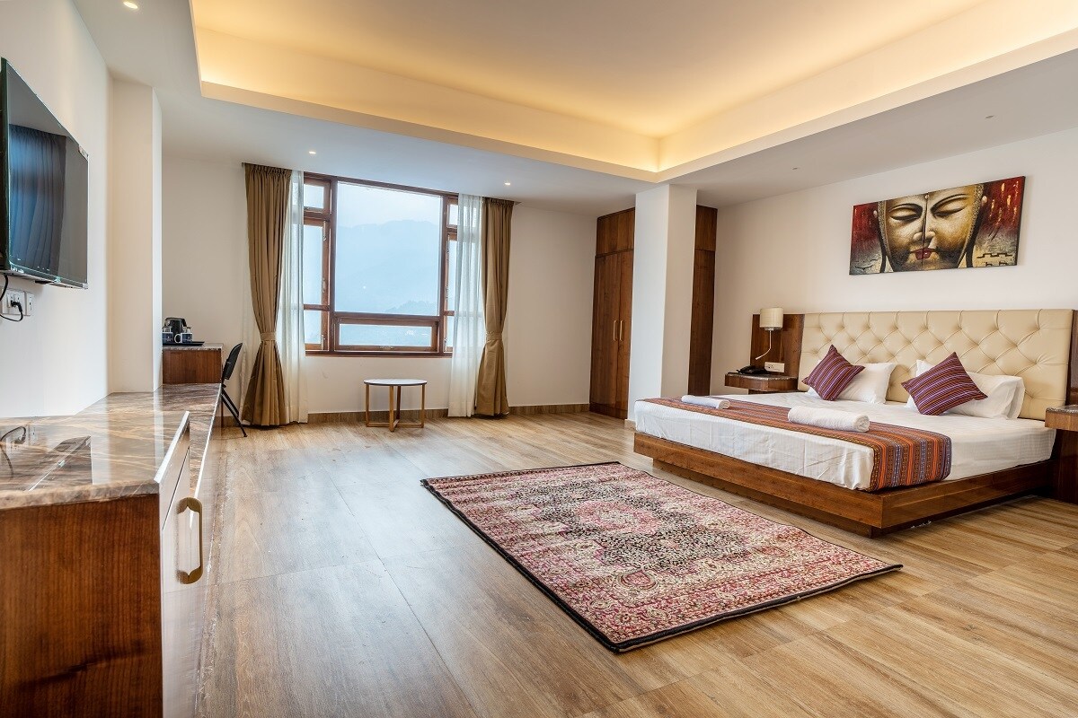 グリフォンの眺望を持つ神秘的な丘の中にあり、首都ガントクからわずか3 kmのところにあり、別次元のリラクゼーションを提供する一生に一度の体験を提供します。海抜6000フィートの高台に位置し、想像を超える快適さで平和を見つけることができます。ぜひ訪れて、バケツリストの項目を1つ達成するお手伝いをさせてください。デラックスルームは山の眺望に面しています。