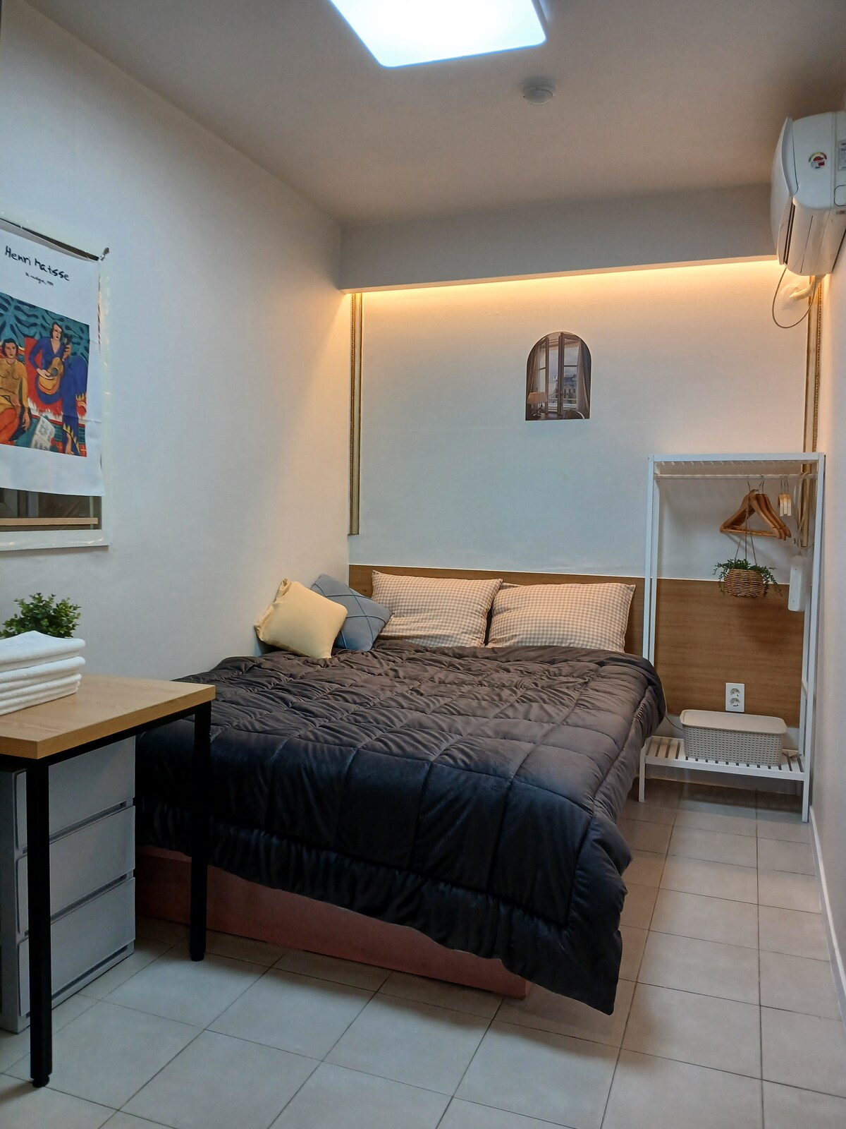 Compact room ideal for solo travelers with light luggage, offering a simple and efficient stay. Near Jamsil (20 min) with easy access to Gangnam and central Seoul. Perfect for concerts, short trips, and convenient stays. Clean, quiet, with self check-in and free streaming services.