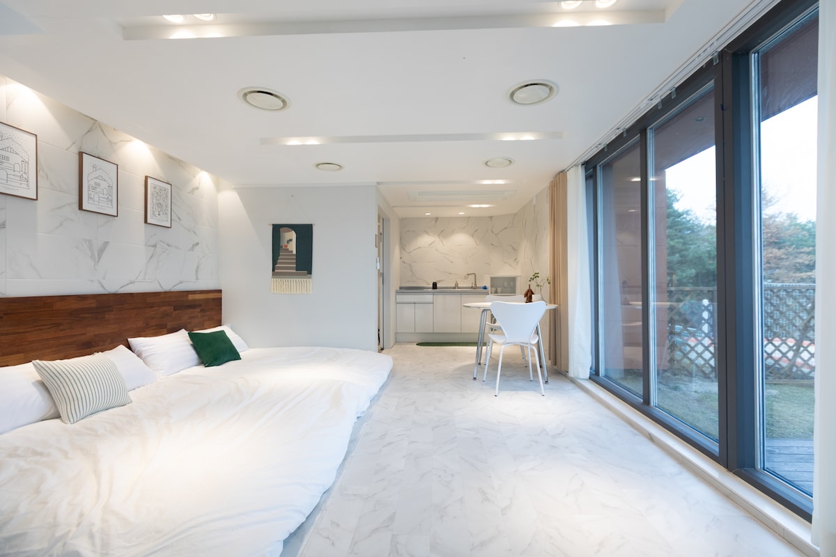 こんにちは。私たちはさまざまな休憩スペースを研究し提供するONDAです。 ここに滞在されるすべての方に、快適で幸せな時間を過ごされることを願っています。 【宿泊施設のご紹介】 ナミ島近くに位置するガピングスパフ��션のガラムスキ입니다。 全室タイプのリバービューとジェットスパ、個別バーベキュー、屋外プールをお楽しみいただき、幸せな思い出を作りましょう! [部屋タイプ] ワンルームタイプ(ダブル1 +キッチン+トイレ1 ) *寝具はご予約人数に合わせてご提供いたします。