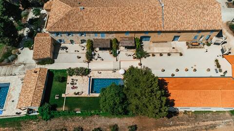 ラベンダーの花、タイム、ジャスミン、南のハーブ、そしてセミの鳴き声の香りに包まれ、松の木陰の「丘」の上にあるこの隠れ家は、最も豪華な風景を提供します。朝目覚めると、広々とした畑が目の前に広がり、広大な窓からは、オレンジ色に染まる壮大な日の出をベッドから眺めることができます。