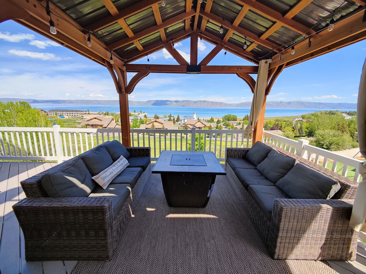 BlackRidge LakeHouse - where you can enjoy amazing views of Bear Lake! Come relax in this calm, stylish space. This 3 bedroom, 3 bathroom home with stunning views of the lake will take your breath away! Every detail has been thought of. You get Ideal Beach Access so you can swim in the pools, relax in the jacuzzis, or play on the beach. Come home and relax on the deck, play cornhole, or basketball. There's even a bunkroom for the kids! Come out and enjoy the best of what Bear Lake offers!