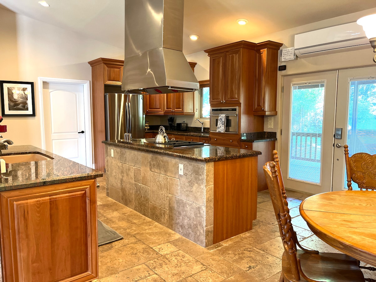 この川の家は、大きなポプラの木陰にあり、エスカランテ・キャニオン、牧草地、崖、川の景色が四方八方見渡せます。 玄関から一流の景色を楽しむハイキング。 玄関のすぐ外には自然の驚異があり、車で1時間以内にはさらに多くの自然の驚異があります。 朝と夕方に牧草地で鹿や野生の七面鳥を探し、渓谷の壁の上で雲の影が変化するのを見てください。 渓谷を上り下りして、荒々しい自然の中へ行った後は、快適な家に戻りましょう。