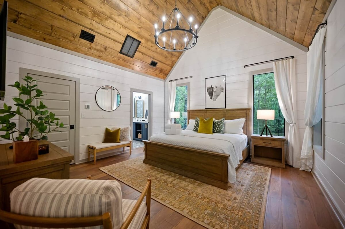 Modern Luxury Cabin | 2 King Suites • EV Charger • Pet-Friendly Discover The Modern—a stunning, design-forward cabin on 3.5 private acres in Broken Bow. Featuring soaring 18-ft ceilings, large windows, an all-white chef’s kitchen, wood stove, and 2 luxe king suites (one w/ soaker tub). Enjoy forest views, cozy up by the fire, and charge your EV onsite. Dog-friendly too! Book your unforgettable getaway today.