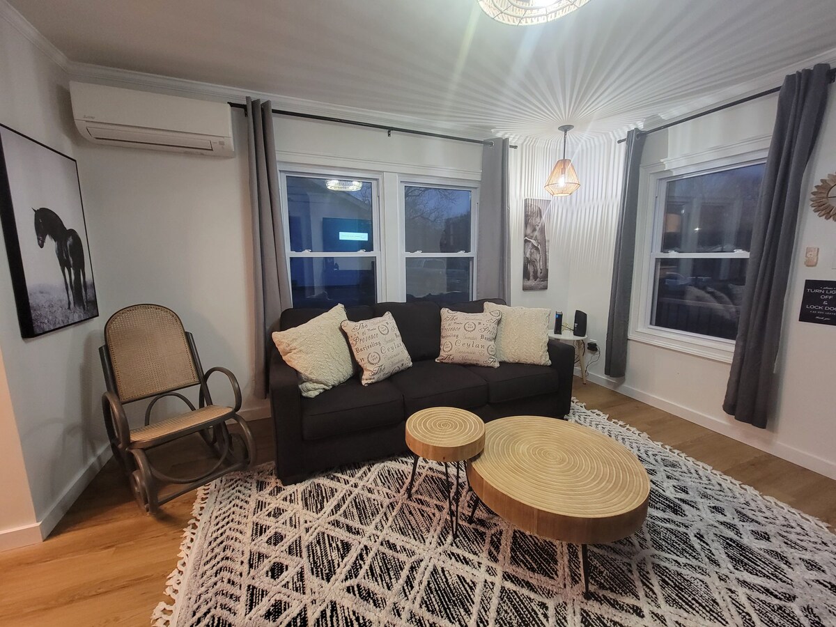 この2ベッドルーム、1バスルームのスイートにチェックインするとすぐに、シャーロットのストリートアーティスト「チークス」によるマティスにインスパイアされた壁画が目に入ります。 高い天井と高級な仕上げ、アメニティが豪華な滞在を演出します。 サウスフォーク川でのカヤック、クラマートンの有名なゴートアイランドパークや地元のレストランへの自転車が無料で利用できます。 探索の後は、ここに戻って焚き火の周りでさらに思い出を作り、リラックスすることができます