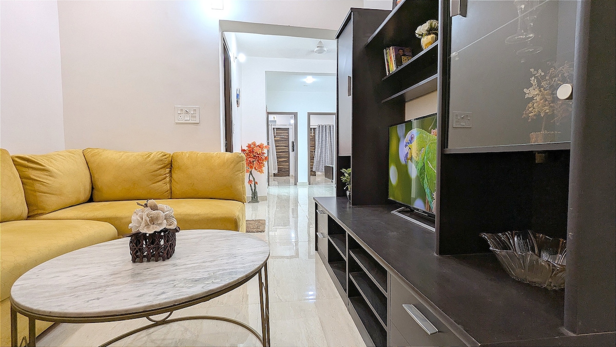 家具が完備された1BHKアパートで、快適かつ贅沢な滞在をお楽しみください。おひとり様、カップル、出張に最適です。キングサイズのベッド、Netflixを備えたスマートテレビ、設備の整ったキッチン、高速Wi-Fi、仕事専用スペースを備えています。 最高のアメニティ・設備:プール、ジム、ゴルフコース、乗馬場、ウォーターパークなど!安全で交通の便の良いエリアにあり、定期的なハウスキーピングが行われています。 今すぐ予約して、究極の滞在体験をお楽しみください