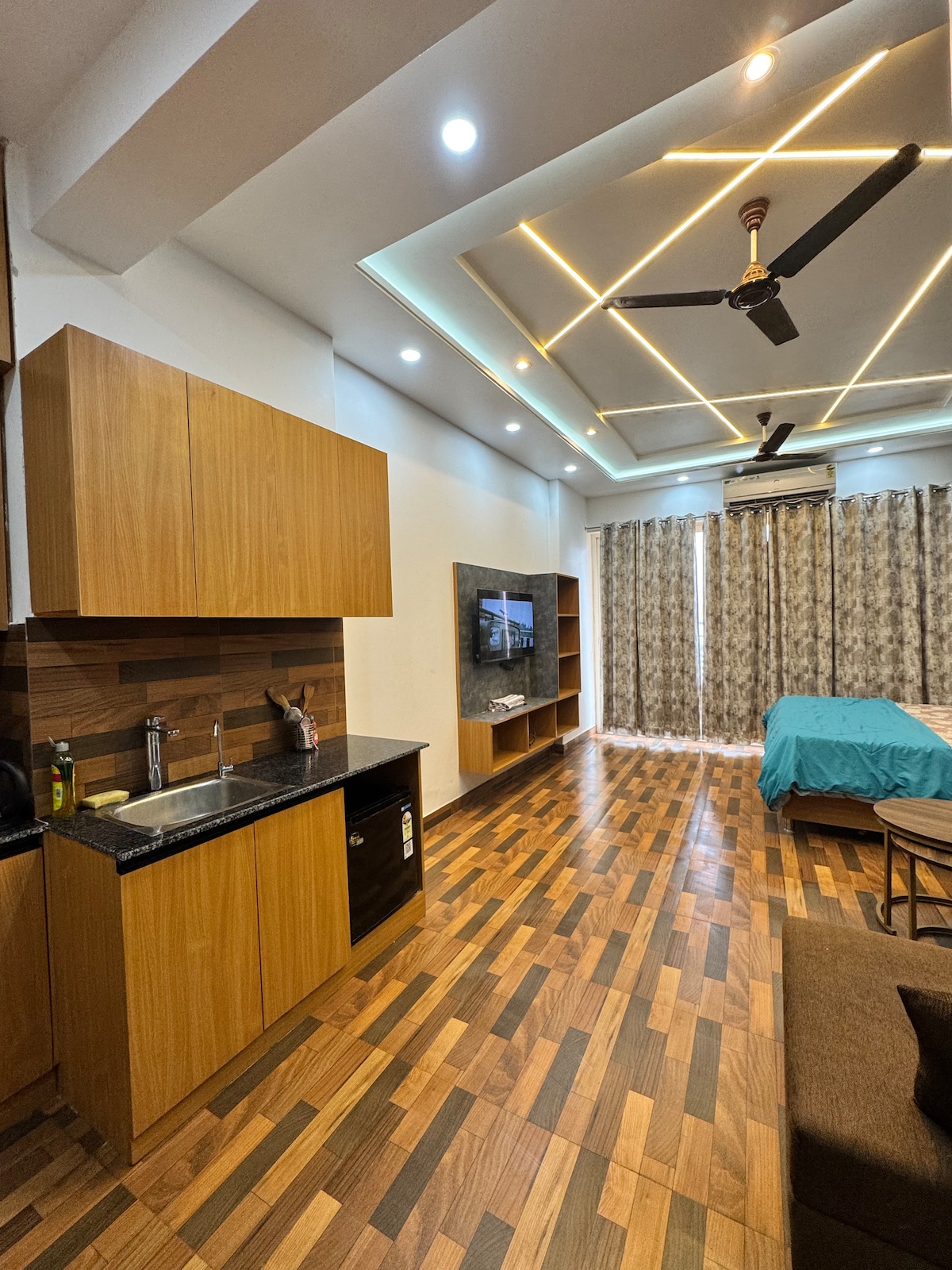 地下鉄駅近くのグレーター・ノイダで利用可能なすべてのモダンなアメニティを備えた、豪華なワンルームアパートです。 エキスポマート近くのグレーター・ノイダにある、豪華で広々としたカップルに優しいワンルーム。 気に入っていただけること: ✔ ユニークなインテリア – 魔法のようなインテリアをお楽しみください。 ✔ モダンな快適さ–快適なベッド、居心地の良い座席、スタイリッシュなインテリアが美しく整った空間。 設備の整った✔キッチン–お気に入りの食事を簡単に作ることができます。 ✔ 高速Wi-Fiとスマートテレビ–接続を維持し、楽しんでください。