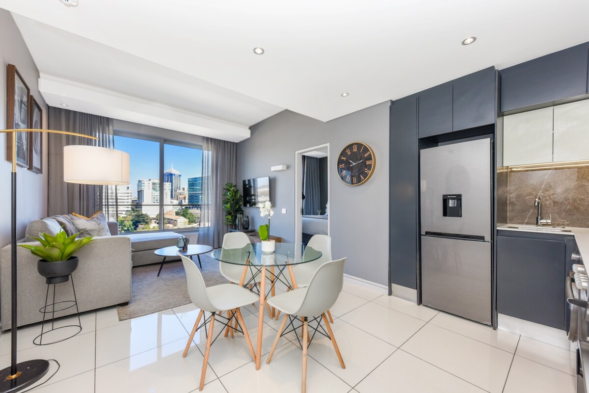 ウォーターフォールの豪華なEllipse Apartmentsの素晴らしいアパートで、スーパーホストが誇りを持って管理する滞在をお楽しみください。リラクゼーション、生産性、レジャーのために設計された、美しく家具が揃った空間の快適さをお楽しみください。モダンな高層ビルから、素晴らしい街の景色をお楽しみください。世界クラスのスマートシティに位置し、トップクラスのショッピング、ダイニング、エンターテイメントが揃う有名なMall of Africaまで徒歩すぐです。バックアップ電源により、停電中も快適にご滞在いただけます