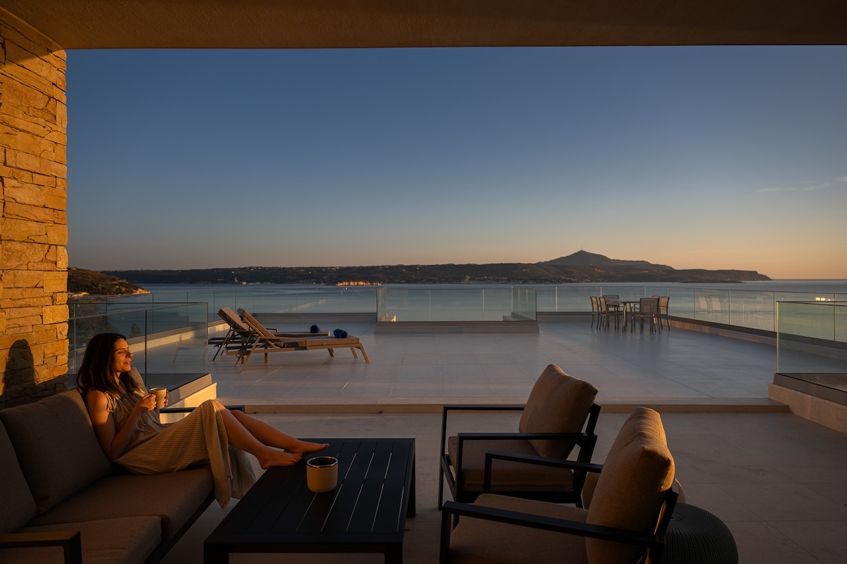Astelia Villaは、インフィニティヒーテッドプール、パノラマの海の眺め、忘れられない夕日を楽しめる、新築の3ベッドルームのリトリートです。5Gバックアップを備えた超高速400 Mbpsのインターネットにより、贅沢な環境でリモートワークに最適です。オープンプランのリビングと景色を中心にデザインされた広い屋外テラス。すっきりとしたライン、自然素材、クレタ島の海岸線との間に何もありません。ハニアとレティムノの間の高台に位置し、アルミリダ、カリヴェス、スタブロスビーチから数分、人混みから離れています。