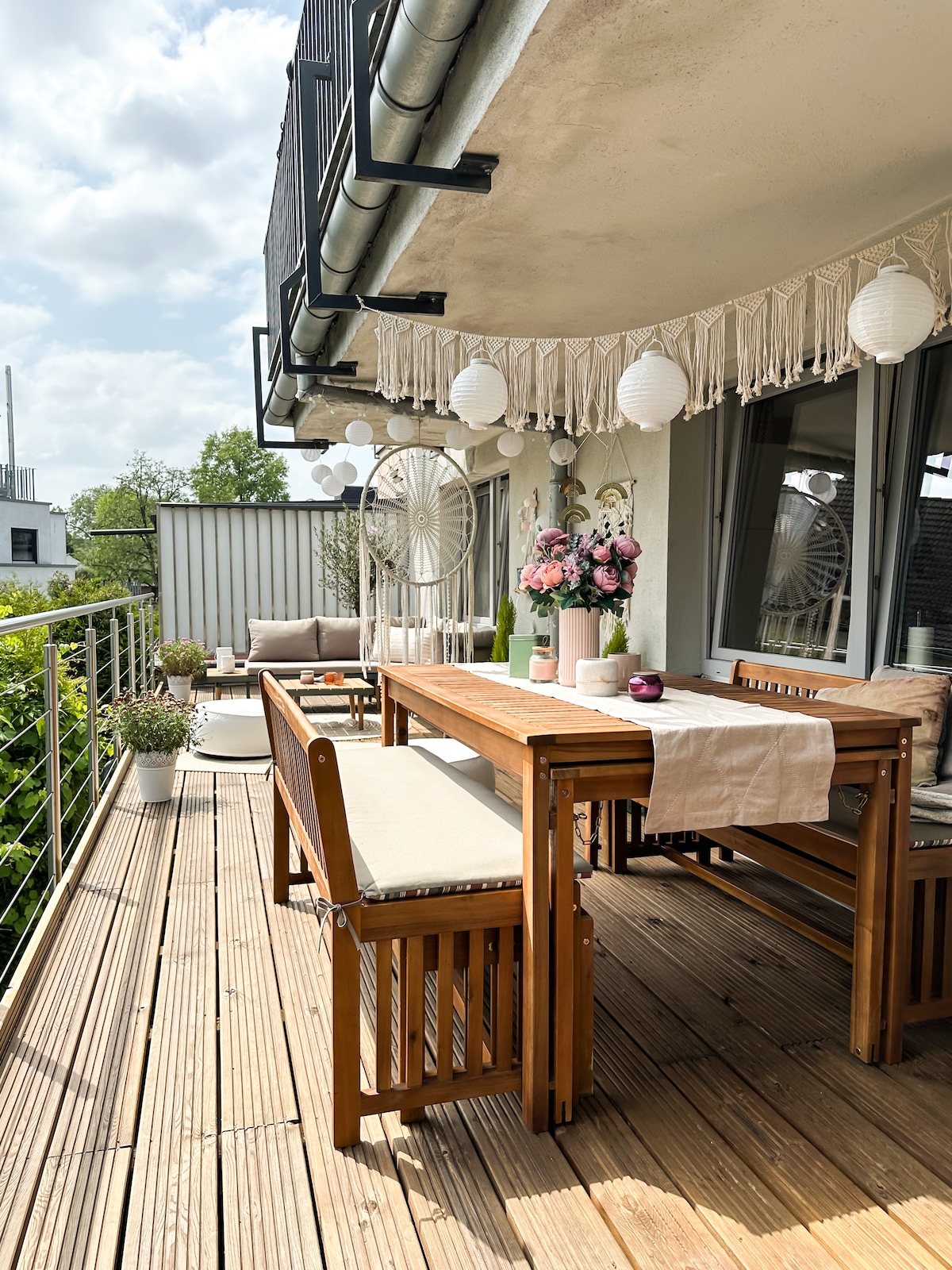 静かな最高のロケーションにあるモダンでスタイリッシュな宿泊施設 - 出張者や見本市訪問者に最適です。 直通:1番線は玄関の前で、あなたをRheinEnergieSTADIONにすぐに連れて行きます - (1駅)ケルンメッセ、旧市街、ランクセスアリーナへの直通。 ラインセンターケルン(アップルストア、カフェ、レウェ)までわずか2駅。 キングサイズベッド、映画館のような65インチスマートテレビ、オープンキッチン、独立したダイニングエリア、座席付きガーデン。 バスタブ付きの広いバスルーム。BAB A1