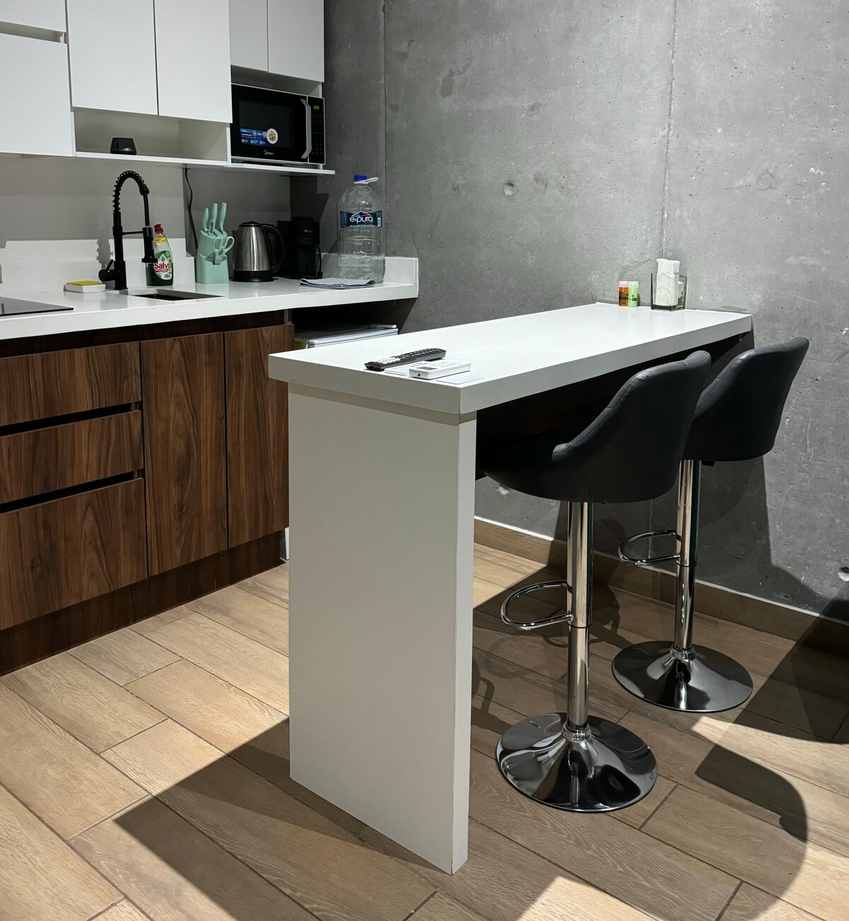 The best location and view of Monterrey! Fully remodeled penthouse with luxury finishes and intelligent alexa-assisted system (6 devices). Two 55'' screens feature Firestick; also playing on the other 2 monitors. 2-story penthouse Ground floor: kitchen, dining room, social area with sofa bed; onyx table; fireplace, freezer, bathroom, TV & terrace (armchairs) Upper part: Master bedroom, queen bed, TV, minibar and desk. Pool, GYM and Meeting Room