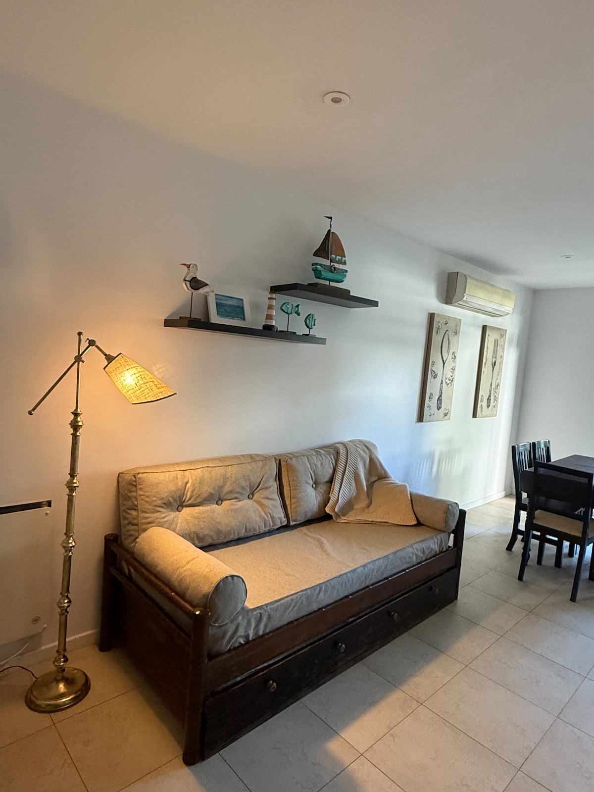 Departamento en Mar de las Pampas con capacidad para 4 pasajeros. Dos ambientes. A 50 metros del mar y a 600 mts del centro comercial. Ubicado en el segundo piso con vista al jardín . Comodidades; - Living comedor con cocina integrada, TV led y Split Frio Calor, - Cocina integrada con barra desayunadora, - Dormitorio con cama matrimonial con LCD y Split Frio calor, - Baño con hidromasaje, - Balcón con juego de jardín y parrilla, - Incluye ropa blanca, toallas y sabanas,