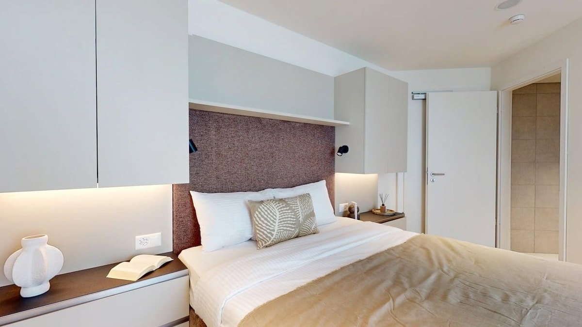ナシオン、コルナヴァン駅近くのエレガントで中心部に位置する宿泊施設をお楽しみください!美しい家具、静か、ジムとサウナ付きの高級マンション。近くにトラム(14番線と18番線)とバスが通っています。週単位の貸し出し、最低滞在期間は1か月(建物の内部規定に基づく)。 140×190のベッド付きの1部屋