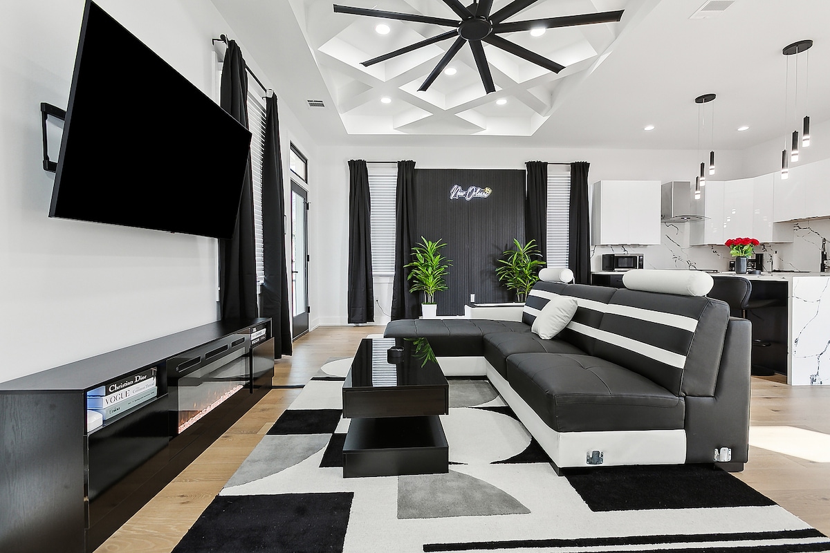 ユニークでモダンなニューオーリンズのアクセントを備えた、プロによって設計された新築住宅。 明るい窓とデザイナー家具を備えた、美しく装飾されたオープンコンセプトの家でくつろぎましょう。 設備の整ったキッチンには、ステンレス製の家電と大きなカウンタートップが備わっており、楽しいジャズブランチを楽しみながら集まるのに最適です。 ビッグイージーで1日観光した後は、スパのような寝室とバスタブが魅力的です。 路上駐車場はご利用いただけません。家の前に路上駐車場があります。