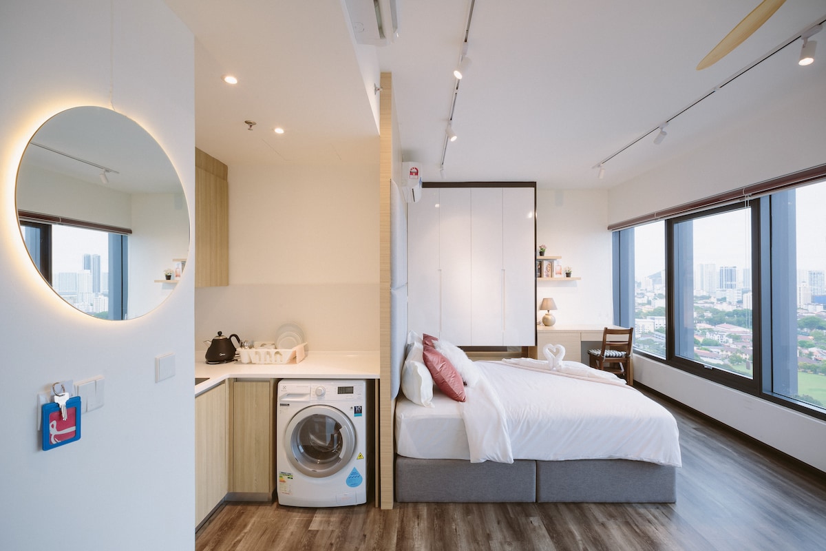 私たちの真新しく居心地の良いスイートは、ペナンの中心部にあり、地元の観光スポットに簡単にアクセスできます。 日本食レストラン、韓国料理レストラン、セブンイレブンのコンビニがすぐ下にあります! 地元の料理、KFC、ピザハットまで徒歩5分以内! 私たちが提供するもの • 素晴らしいおもてなしサービス • 日の出&シティビュー • PS3エンターテイメント&Netflix • 専用駐車場1台分 • 100 MbpsのWi-Fi • インフィニティプールビュー • エアコン完備 この賑やかな街にある静かで居心地の良い場所がお好きなら、今すぐご予約ください!!!