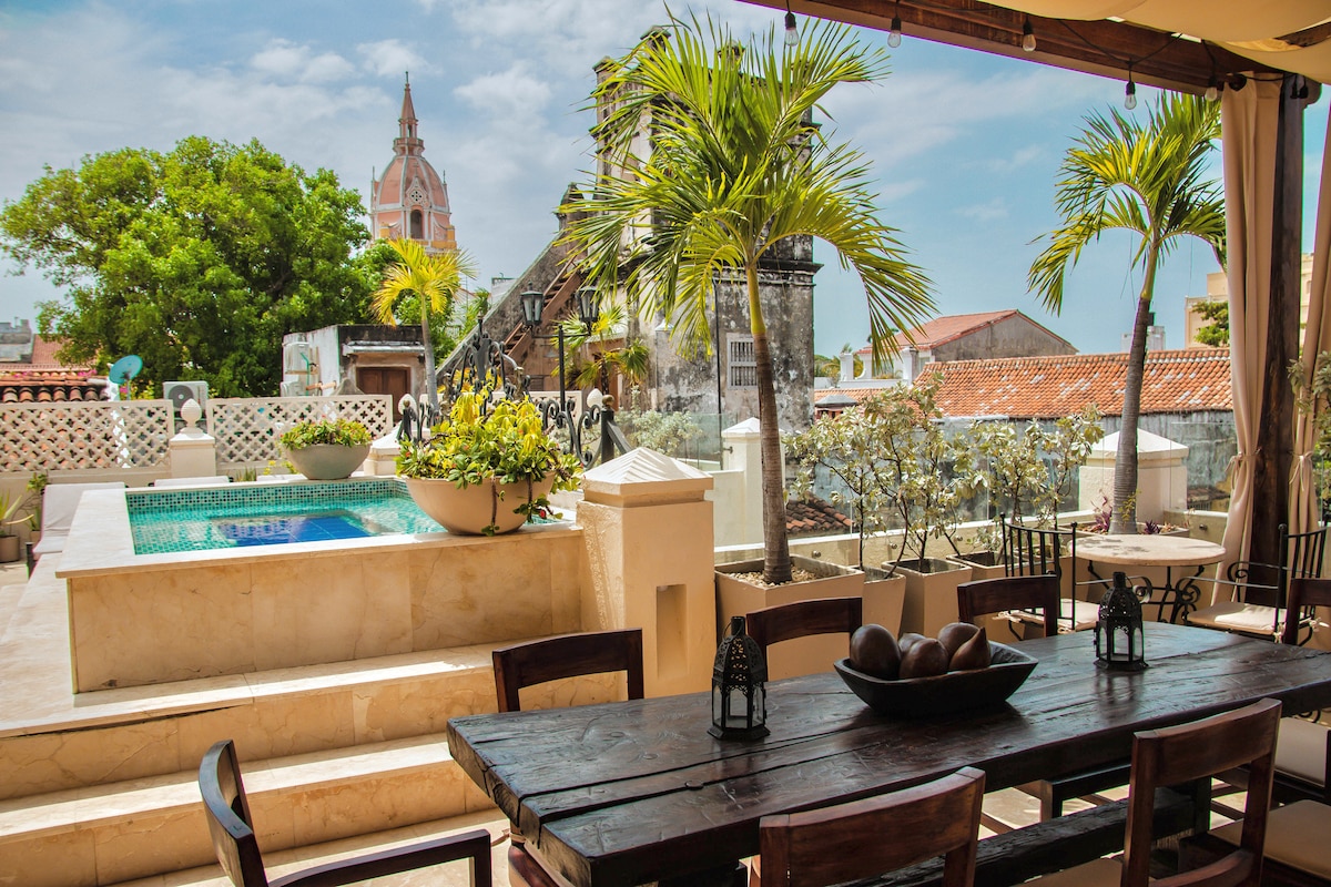 When you arrive at The Villa Catalina you will love this newly built luxurious oasis nestled within the heart of Cartagena's Centro Historico! You will experience a modern 5-bedroom suite villa. You will enjoy the gorgeous pool, delicious breakfast served each morning, daily housekeeping and the added peace of mind with our evening security. Unbeatable location in the walled city next to La Serrezuela Mall, renowned dining, and the refreshing ocean breeze drifting over the ancient city walls.