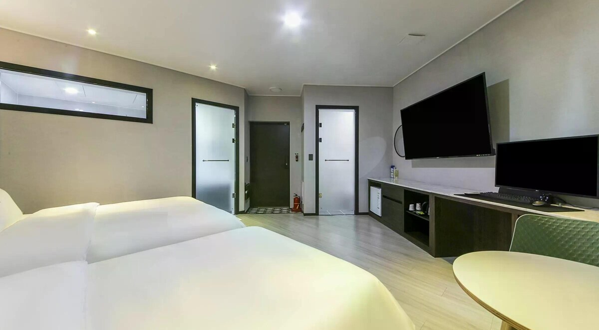 【宿泊施設の人数ポリシー】 ㅁ 基準人数2名/最大人数3名 こんにちは。私たちはさまざまな休憩スペースを研究し提供するONDAです。ここに滞在されるすべての方が、快適で幸せな時間を過ごされることを願っています。 【宿泊施設のご紹介】 思いやり、尊敬、コミュニケーションを基盤とした心のこもったサービスで、お客様一人ひとりを最高のお客様としてお迎えします。 百家の歴史が息づく壮大な公図の姿を表現したINKは、世界中から数十万人の人々が訪れる公주に位置しています。 ホテルは実用性、親しみやすさ、気配りと温かさ、一人ひとりに対する心遣い、そして決して失われない機知に至るまで、訪れるすべてのお客様に温かいサービスをお届けするために最善を尽くしております。 [客室タイプ] ワンルームタイプ(ダブル1、シングル1 +トイレ1)