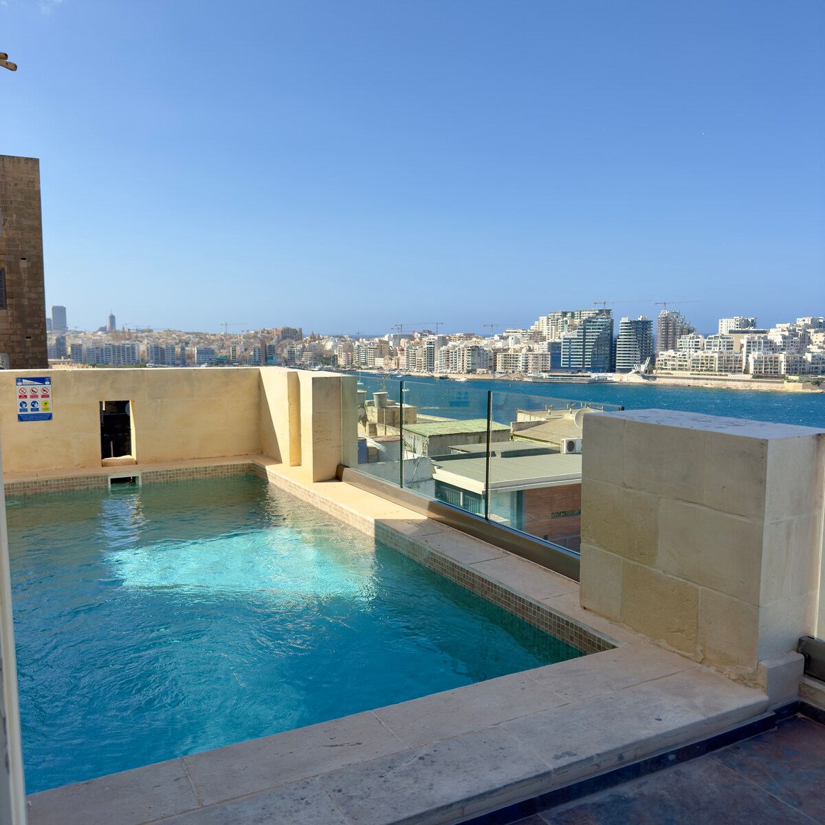 メリーハで最も人気の高い住宅地にある、美しく広々とした、家族や仕事に適した景色の良いサービスアパートメントです。 アパートは全面にエアコンが設置されており、テラスには2/3人掛けの専用ジャグジーがあります。 同じ建物内に設備の整ったジムもあります。 アパートはマルタ最大の砂浜まで徒歩15分(車で2分)で、スーパーマーケット、ショップ、美容院などのすべてのアメニティに比較的近いです。