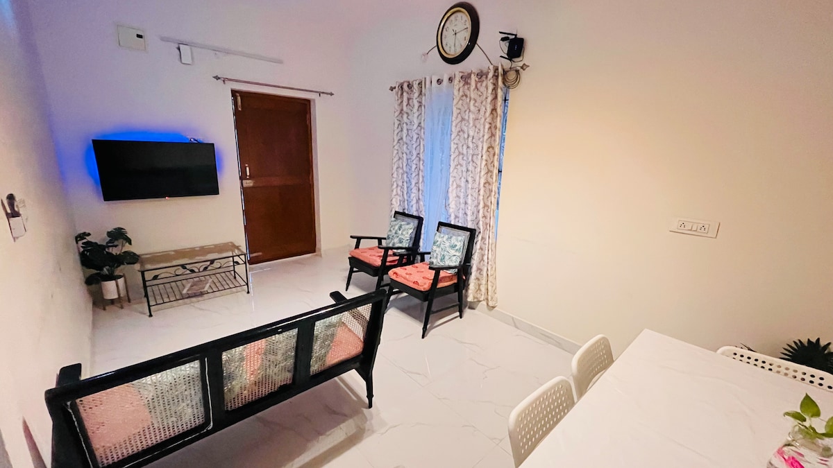 カップル、一人旅、出張のお客様に最適な、快適で手入れの行き届いた1BHKハウスでリラックスしてください。この家には、専用の寝室、リビングエリア、設備の整ったキッチン、清潔なバスルームがあります。エアコン、高速Wi-Fi、清潔なリネン類、必需品をご利用いただけます。交通機関、レストラン、日常の必需品に簡単にアクセスできる静かなエリアにあります。快適さとプライバシーを確保しながら、短期滞在にも長期滞在にも最適です。
