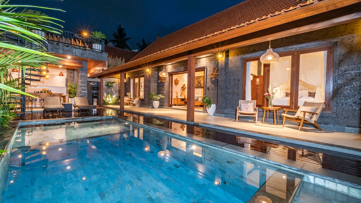 Flood-free area Welcome to Villa Dwipa ☀️ A place where you can indulge yourself in the beauty and luxury of a completely private Bamboo Villa and all it’s facilities surrounded by peaceful nature 🍃 From a dive in the private pool, watching a movie on the drop down cinema screen and having a neighbor-less party in the living room to spending peaceful quality time, cozily unwinding on the balcony and everything in between, whether you're friends or lovers, we guarantee you a good time 😊