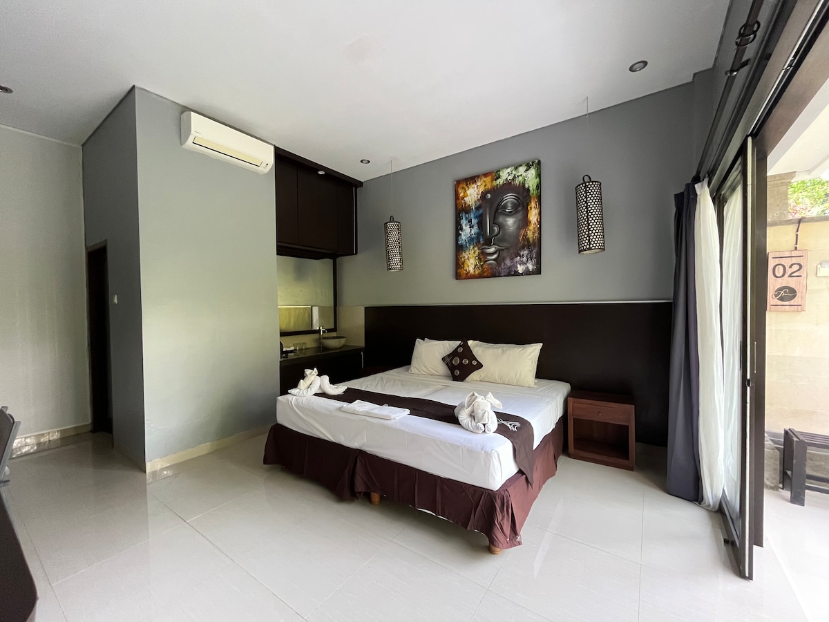 2016年に田んぼの真ん中に建てられたウブドの美しい新しいヴィラで、プールにアクセスでき、ウブド中心部に非常に近いです。 テラス付きの寝室1室。
