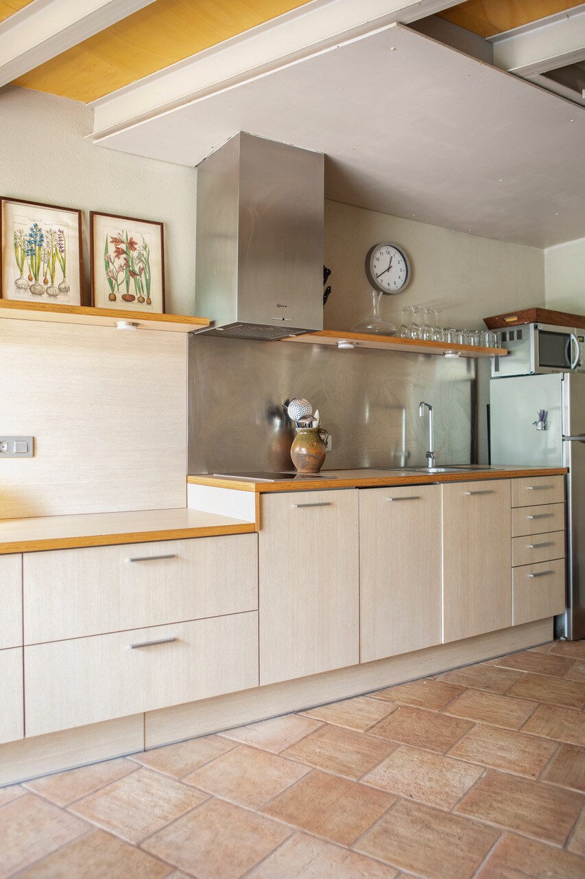 Mas les Corominotes、オロット。 田園地帯の中心に位置する、開放的な空間を備えたカタルーニャ式農家の一角にある、最近改装された小さな家。 天然木の床、高さ5メートルの天井、あらゆる時代の家具やデザインディテールが、居心地の良い独創的な雰囲気を作り出しています。