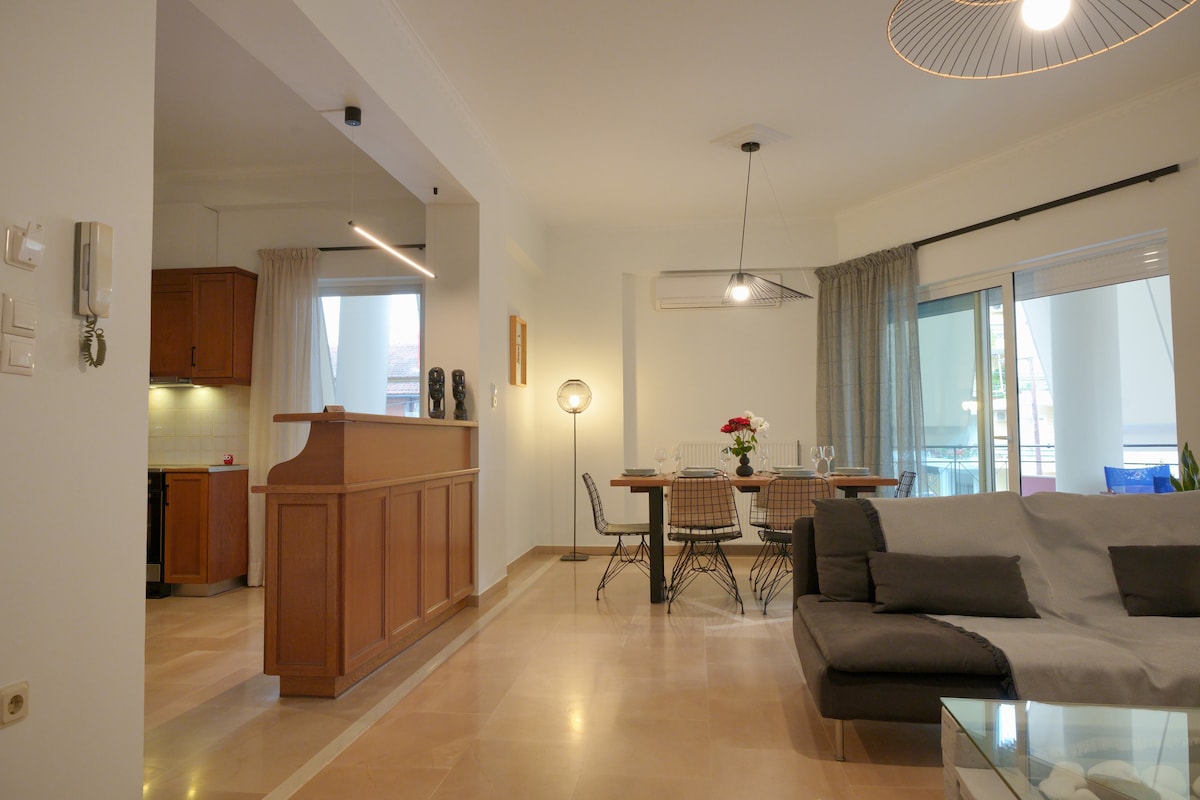 スパルタの中心部にある、最近改装された家具付きのアパートで滞在をお楽しみください。 明るく、風通しがよく、おもてなしの心が感じられる、モダンでミニマリストなスタイル。 優れた断熱/遮音性、モダンな窓枠、各部屋にエアコンが備わっています。 カップル、家族、友達グループに最適です。 クレオンブロトス通りとハマレトウ通りの交差点にあり、中心街の騒音から離れていますが、街の人気スポットや観光スポットに近いです。