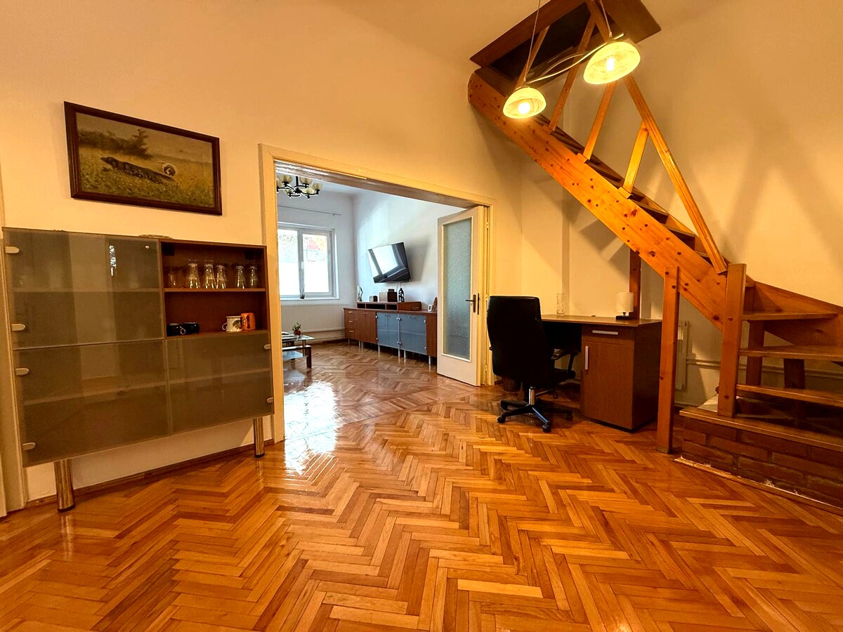 私と父が手作りした、ベルセニにあるユニークな家へようこそ。3つの寝室、2.5つのバスルーム、プロジェクター付きテラス、3台のテレビを備えたこのDIYハウスには、独創性と創造性が備わっています。アーティストとして、私の絵が装飾を飾っています。バーベキュー、屋外サウンドシステム、暖炉、エアコンをお楽しみください。毛むくじゃらのペットは、専用エリアの内外で遊ぶことができます。駐車スペースは2台分あります。とても安全なエリアです。完璧な滞在があなたを待っています!Artloft dot ro
