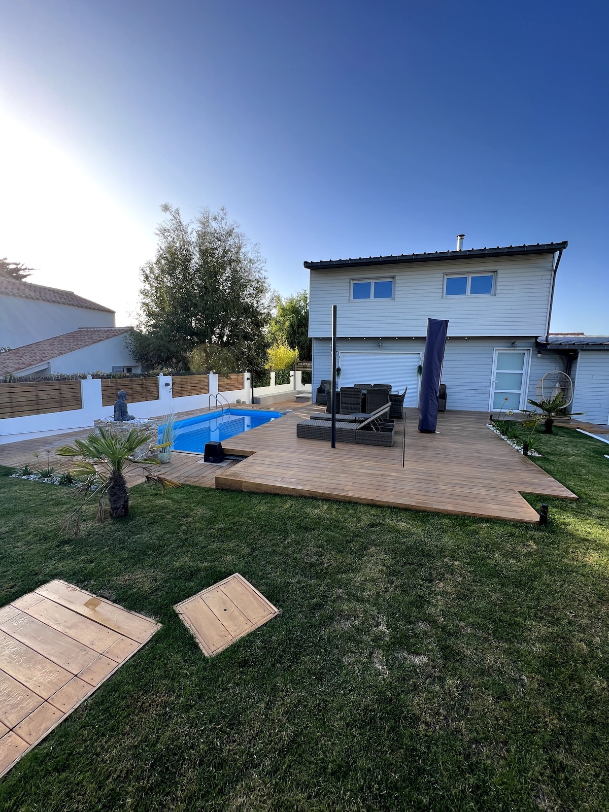 Venez profiter de cette maison fraichement rénovée et aménagée avec goût. Située à 2 km de la plage, à 5 mn de la forêt d'Olonne, à 15 mn des Sables d'Olonne, à 1h10 du Puy du Fou et 1h20 de Nantes, vous pourrez profiter pleinement de vos vacances dans un espace spacieux en famille ou entre amis. A la belle saison, vous profiterez de la terrasse, de la piscine chauffée et d'un grand terrain pour des parties de jeux de plein air. Merci de m'informer si vous venez avec votre animal de compagnie.