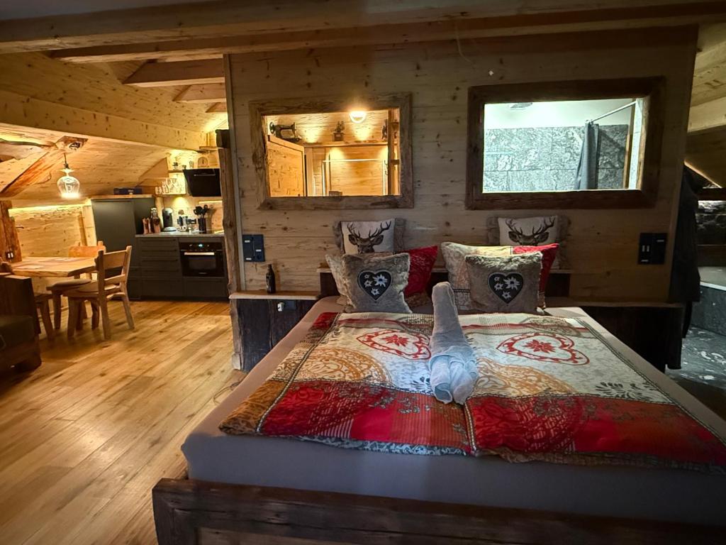 ウンタースベルク山の麓にある260年以上の歴史を持つ家にある小さくてロマンチックなアパートメント。中央の廊下を通ると、リビングルーム、オープンキッチン、バスルーム、そして引き出し式ソファベッドがある小さな書斎につながります。リビングルームを通ると、ダブルベッドを備えた寝室に到達します。リビングルームにある暖炉は、心地よい夜を過ごすのに最適です。ダイニングセットを備えた小さな前庭でリラックスできます。