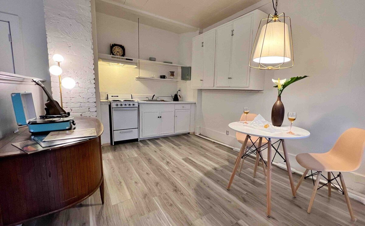 ダウンタウンにある、2階の居心地の良いワンルーム