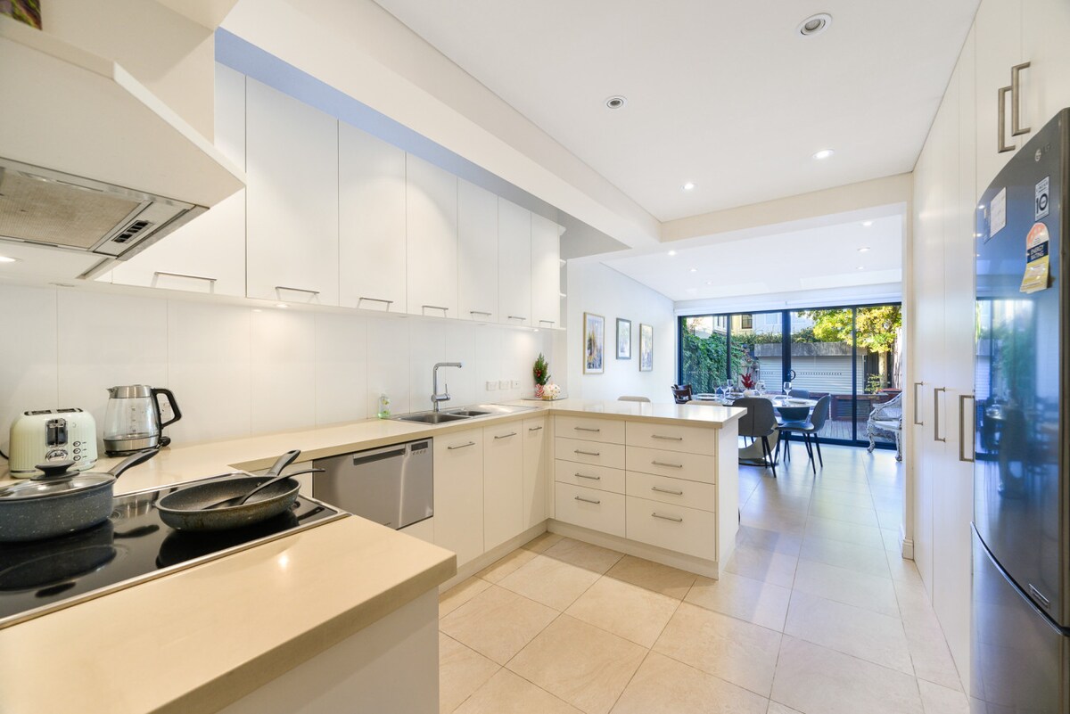 グリーブテラスの1階全体で、独立した入り口があります。 クイーンサイズベッド、スイート、ランドリー、ミニキッチン。 広々とした快適なリビングルームは、静かなガーデンテラスに面しています。 ダーリングハーバー、チャイナタウン、魚市場、大学、CBDから徒歩圏内の中心部に位置しています。 グリーブは、美しいビクトリア朝のテラスハウス、絵のように美しいハーバーサイドの散歩道、素晴らしいカフェ、バー、パブ、レストラン、ショップがある、市内の歴史的な郊外です。 ホストはRichardさんとLisaさんです。