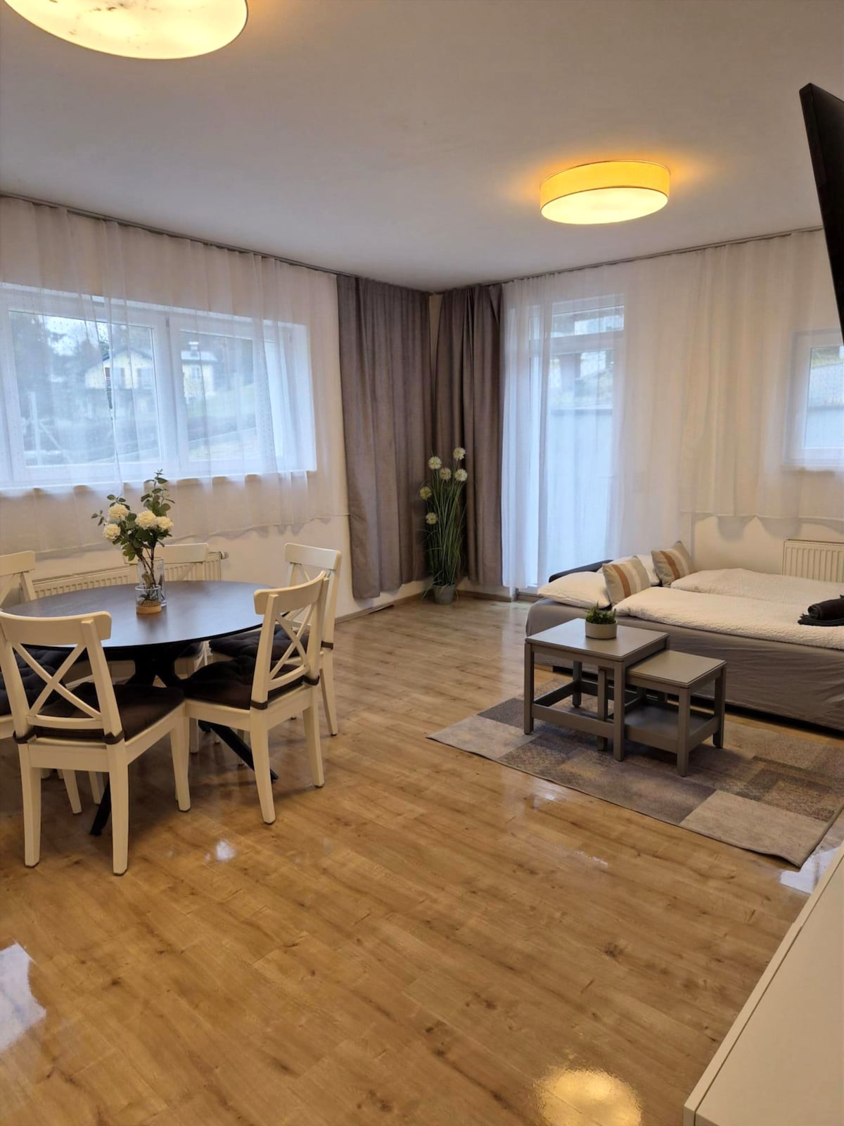 Welcome to your modern and cozy suite. The accommodation offers everything you need for a relaxing stay: free parking, Wi-Fi, Netflix, a fully equipped kitchen, washing machine, dishwasher, hairdryer, iron, oven, stove, toaster, microwave, kettle, and coffee maker. The bus stop is a 10-minute walk away (14 minutes to the city center). The highway exit is also very close by. The area is very quiet. We look forward to welcoming you!