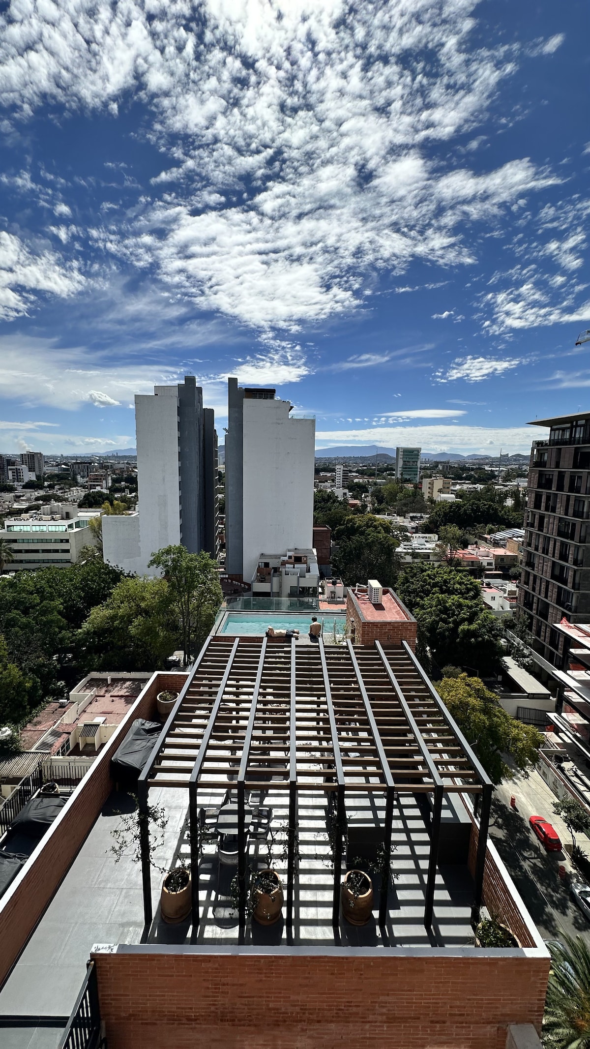 Departamento elegante y céntrico que ofrece un espacio único y cómodo para los viajeros que buscan una inolvidable estadía. El depa se encuentra en el corazón de Guadalajara, zona chapultepec/americana, ofreciendo un fácil acceso a las atracciones más populares de la ciudad, incluidos lugares de interés histórico, la mejor zona gastronómica y cultural (cafeterías, mercados, bares, etc). Disfrutarás de una vista de 360° desde nuestra terraza rooftop. Contamos con 2 terrazas, alberca y firepit.