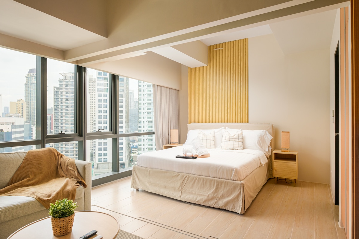 マカティ・サルセドの素敵なミニマリスト1ベッドルームステイケーション