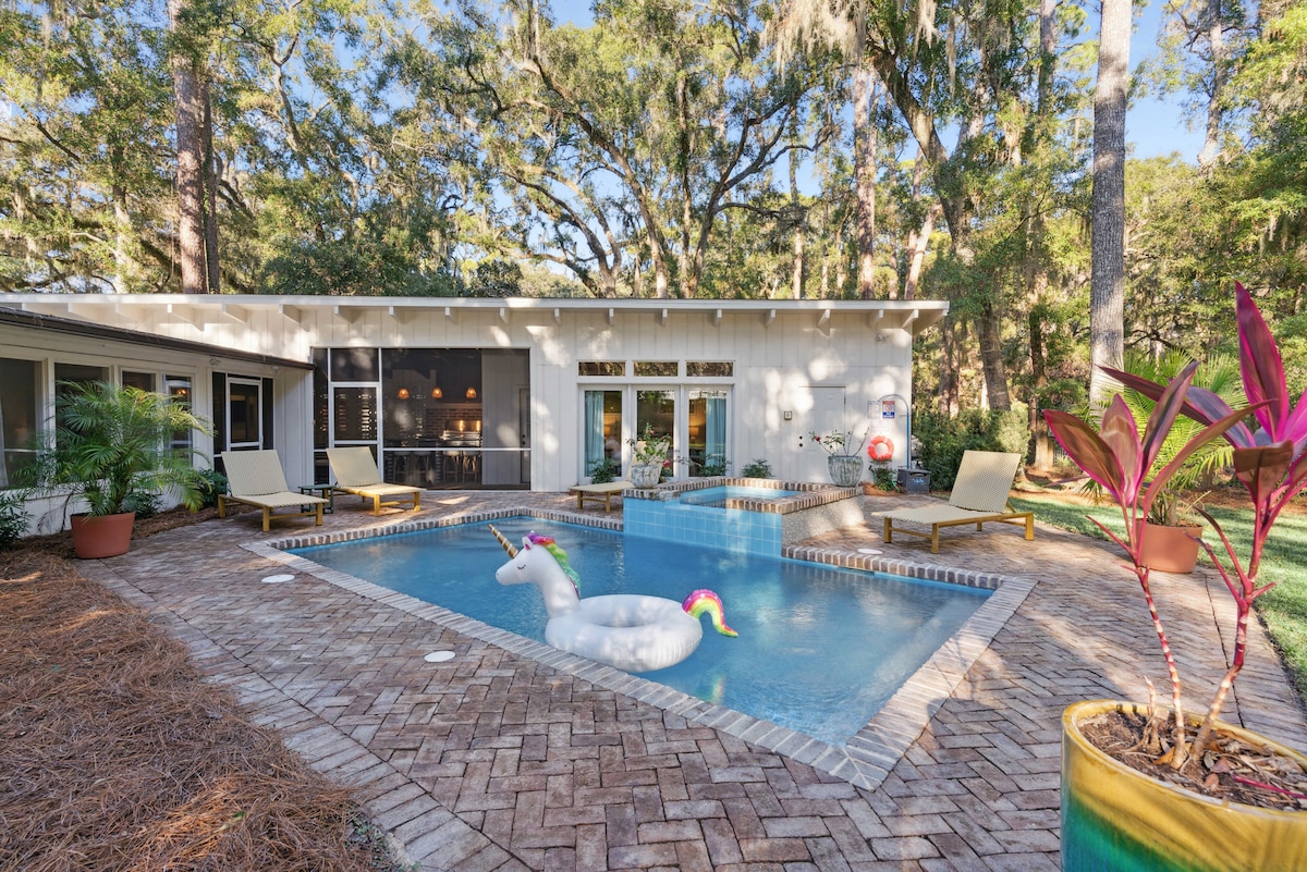 Escape to your private island retreat on beautiful St. Simons Island, Georgia. This adults-only, pet-friendly retreat offers the perfect blend of modern comfort and coastal charm. Recently renovated, the home features 2 bedrooms, 1 full bathroom and a delightful kitchen. Enjoy a fenced yard, covered patio, private hot tub, and shaded parking beneath stunning live oaks. Perfectly located near beaches, dining, and island attractions—your private coastal getaway awaits.