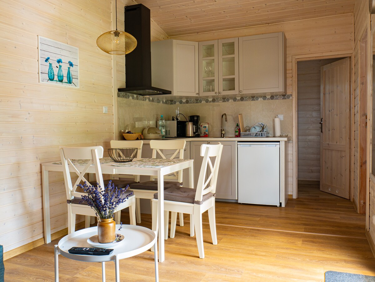 Chatka Baby Agi to dom z duszą, gdzie naprawdę poczujesz ciszę i spokój. Otacza ją ogród pełen zieleni, duży taras z leżakami, hamak, miejsce na ognisko i grill. Możesz tu wypić kawę z widokiem na wschód słońca, spędzić wieczór przy winie, czy po prostu poleżeć z książką. Kuchnia jest wyposażona jak w domu, łazienka wygodna, przestrzeń do wspólnego odpoczynku i rozmów. Blisko są lasy, wąwóz, zalew, ścieżki spacerowe. Goście wracają po ten klimat – na żywo jest jeszcze piękniej niż na zdjęciach.