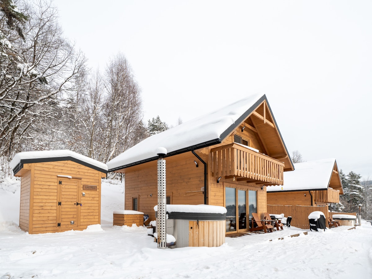 Idealne miejsce dla miłośników natury, wyposażone w fińską saunę i jacuzzi z widokiem na malownicze lasy. Prywatny taras z grillem zapewnia relaks i kameralną atmosferę Jacuzzi oraz sauna są dostępne za dodatkową opłatą. W przypadku pobytów o charakterze wieczoru kawalerskiego lub panieńskiego obowiązuje dodatkowa opłata organizacyjna. Szczegółowe informacje znajdują się w zasadach obiektu.