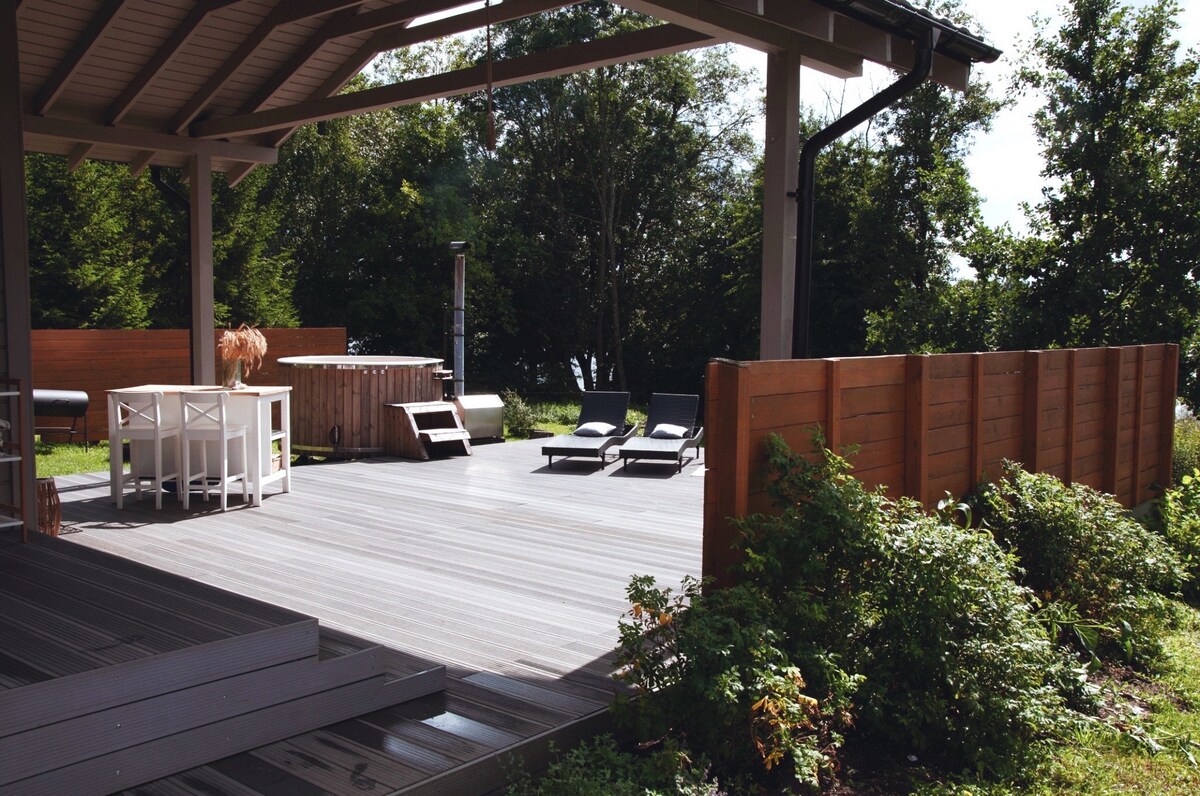 広々としたテラス、サンラウンジャー、屋外家具、バーベキューグリル、素晴らしい景色を備えたロッジ。 湖につながるリンデンの隣にあるサウナは、子供に適した海岸です。 家の中:リビング、バスルーム、子供用屋根裏部屋、寝室を備えたミニキッチン。 ベッドリネン、食器、コーヒー/紅茶、洗濯機、タオル、Wi - Fi、グリル、サウナ。 隣: Meteliai Regional Park、Meteliai Observation Tower、Visitor's Center、Kumice Falls、Mounds。 自然に囲まれたこの美しいロマンチックな場所をお楽しみください!