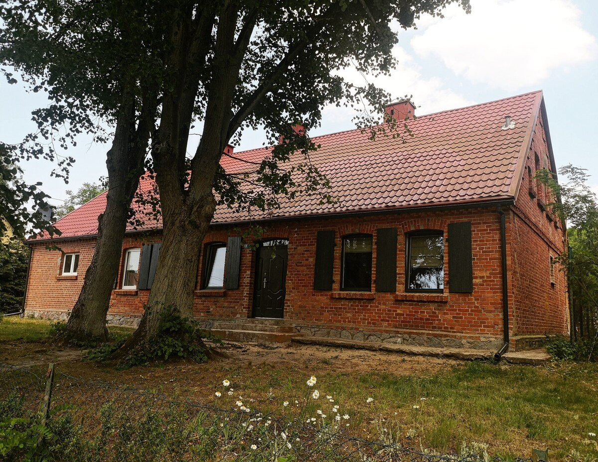 Far from the big city, our "Farmer's Cottage" is located on a picturesque plot on the edge of the forest reserve "Wiejkowski las". Here you can experience complete peace and pure nature! A walk through the forest, past numerous swamps and lakes, relaxing reading a book by the fireplace or a trip to the nearby Baltic Sea? All this and much more is what you can excpect here!