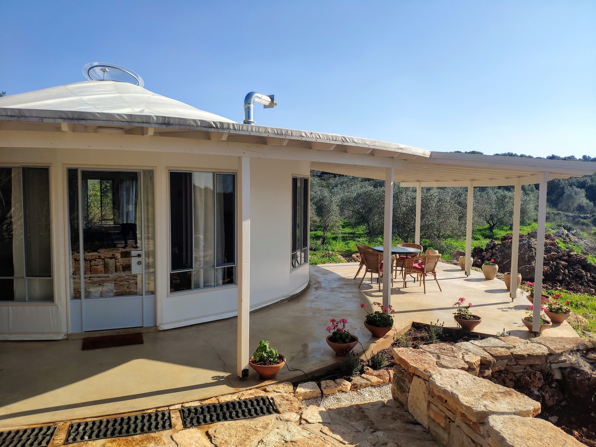 キブツ・ハニタにある専用ユルトで、Wi-Fi、エアコン、専用玄関、バスルーム、6月から9月まで利用可能なプールがあります。地中海を見渡す絶景の大きなオープンパティオがあります。たくさんのオークの木々と美しい庭園がユルトを囲んでおり、落ち着いた穏やかな雰囲気を作り出しています。敷地内にはトランポリン、ブランコがあります。徒歩圏内にはレストラン、ハイキングコース、洞窟、小さな動物農場、バスケットボールコートがあります。