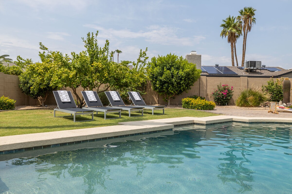 スコッツデール中心部にある壮大なオアシスへようこそ! この素晴らしい家は単なる宿泊先ではありません。高級感のある快適さとエンターテイメントを体験できます。 美しく整えられたベッドルーム5室とモダンなバスルーム4室を備えたこの家は、家族連れ、ビジネスグループ、または忘れられない休暇を求める友人に最適です。 スコッツデール旧市街とファッションスクエアショッピングまで15分 TPCスタジアムゴルフコースまで9分 ハイキングコースまで10分 空港まで10分 -オナーヘルス医療センターまで5分