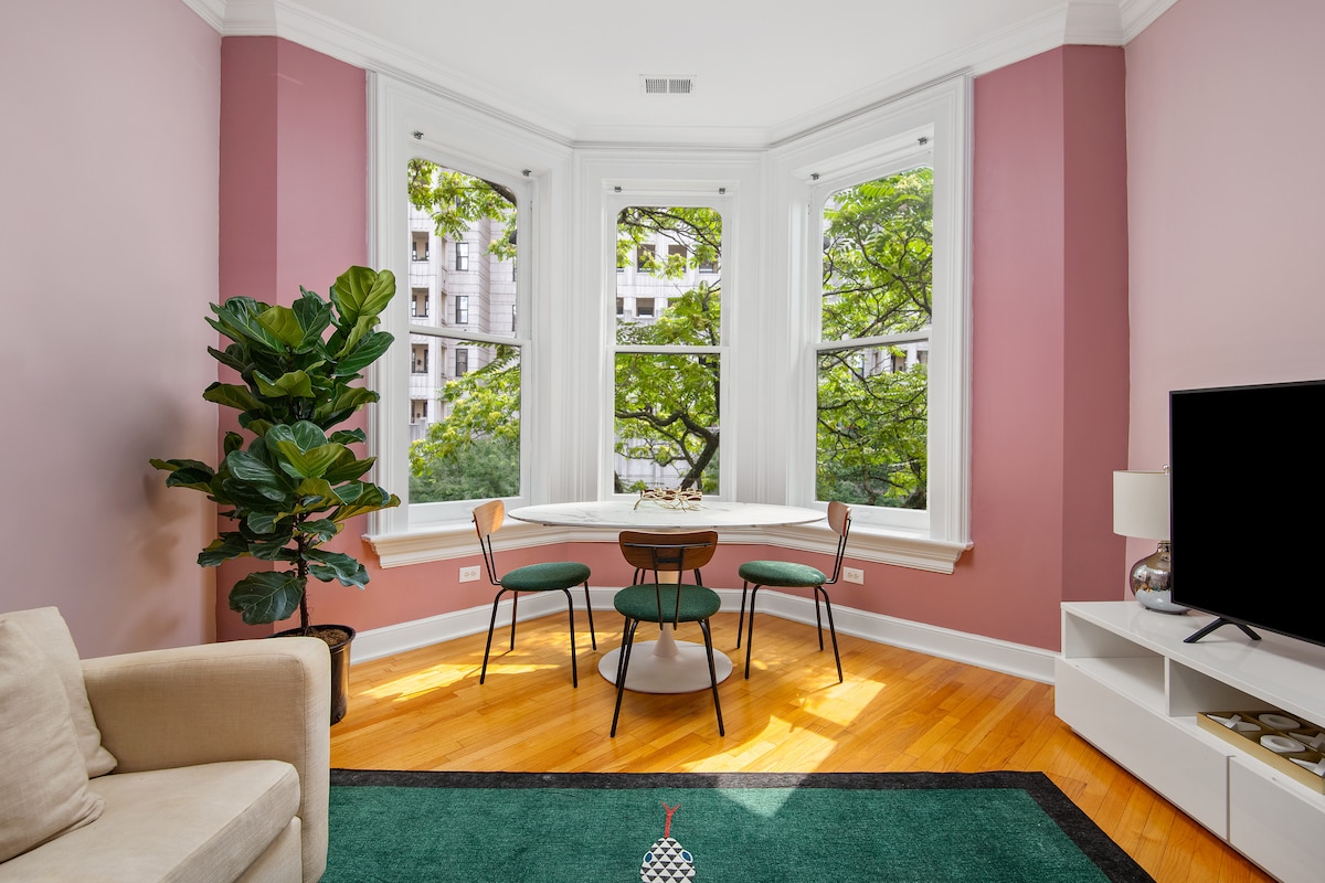 シカゴのミシガンアベニュー/ゴールドコースト地区の中心部にあるヴィンテージ3フラットのプライベート2BRアパート。 世界クラスのショッピングやレストラン、オークストリートビーチ、公共交通機関(Lトレイン、エクスプレスバス)からすぐの素晴らしいロケーション。 エアコン、洗濯乾燥機、超高速Wi-Fi、スマートテレビ、ワークスペースが含まれています。 隣には時間単位の料金制のガレージ駐車場があります。 注:ゲストは階段を1階分上がらなければなりません。 大都市の典型的な騒音があるので、眠りが浅い方は耳栓を持参する必要があります。