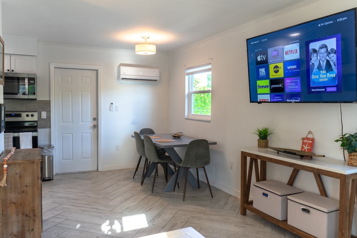 このモダンな海岸沿いの隠れ家は、直接専用玄関がある完全なワンルームアパートメントです。 傘付きの専用屋外シッティングエリア Netflix、Amazon TV、Disney +付きスマートテレビ クイーンサイズベッドと高級マットレス ドレッサー&クローゼット ワイヤレス充電付きワークスペース 大理石タイルのシャワールーム、フルバニティ付き バスアメニティ付き 冷蔵庫と冷凍庫付きの簡易キッチン キューリグ(無料コーヒー付き) IHコンロ 電子レンジ オーブントースター/エアフライヤー 洗濯機/乾燥機 ビーチタオル、椅子、パラソル 1台分の駐車スペース