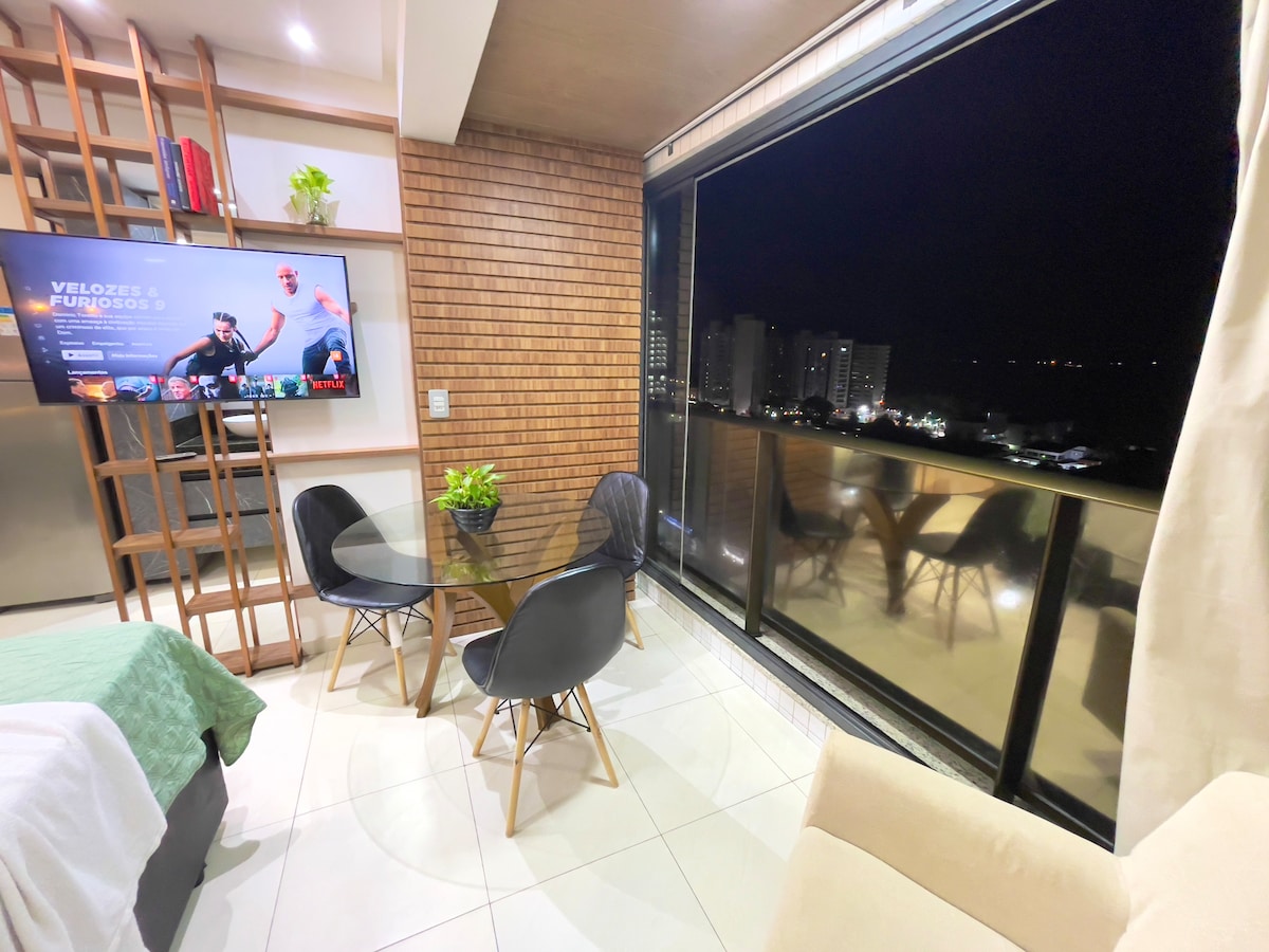 Studio moderno, elegante e muito bem localizado no coração do Calhau. Com decoração clean e varanda com vista incrível, o espaço oferece cama confortável, cozinha completa, Wi-Fi rápido, Smart TV e ar-condicionado. Ideal para casais ou viagens a trabalho, une conforto, praticidade e charme, próximo às praias, shoppings e aos melhores restaurantes de São Luís.